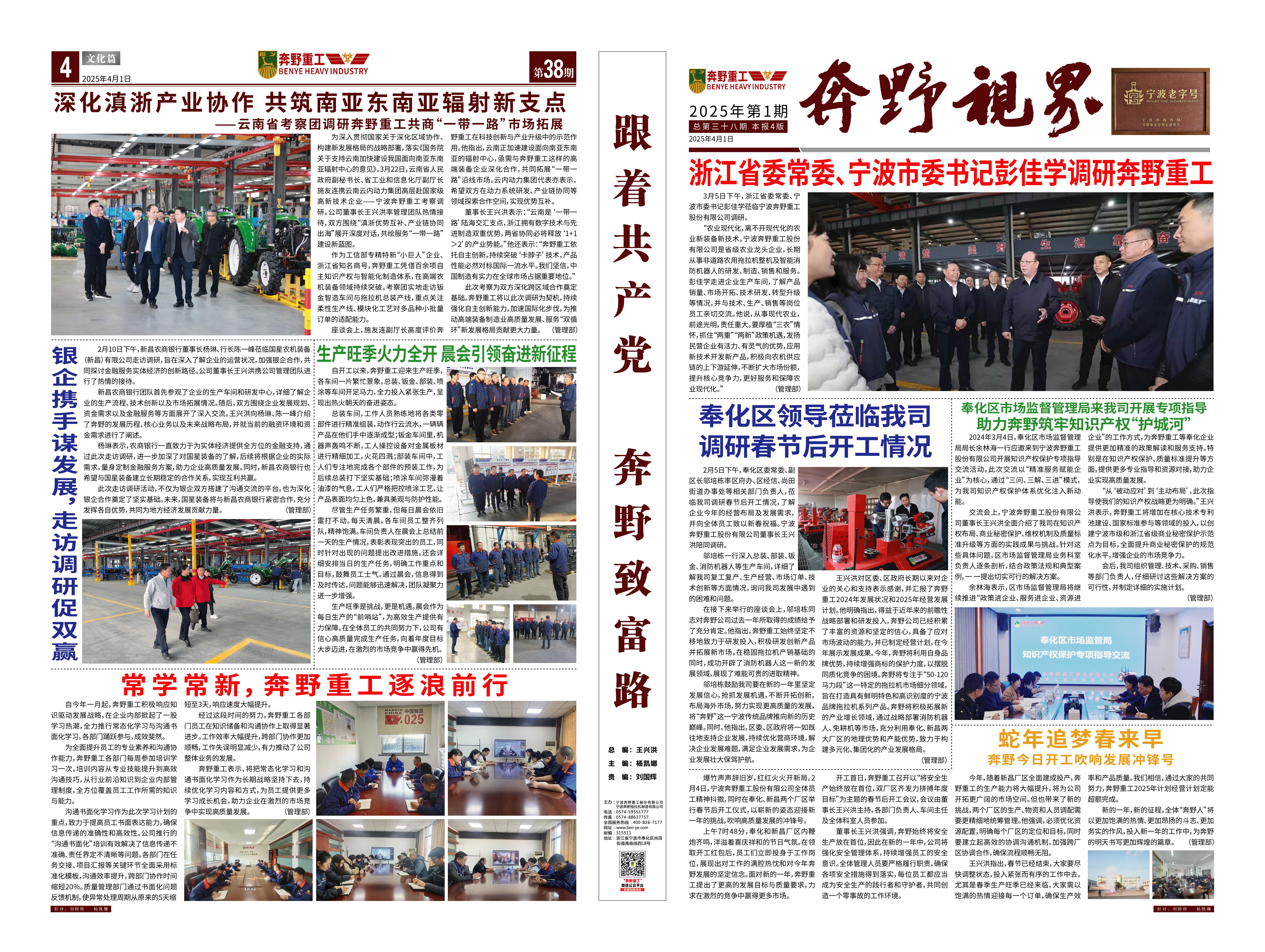 是一家非道路用農(nóng)用拖拉機(jī)整機(jī)及部件設(shè)備研發(fā)、制造、銷(xiāo)售、服務(wù)為一體的涉農(nóng)科研型生產(chǎn)企業(yè),專業(yè)生產(chǎn)寧波型奔野系列拖拉機(jī),是國(guó)家高新技術(shù)企業(yè)、工信部專精特新“小巨人”企業(yè)、浙江省知名商號(hào),寧波市級(jí)農(nóng)業(yè)龍頭企業(yè)、脫貧攻堅(jiān)-產(chǎn)業(yè)合作樣板企業(yè)、鄉(xiāng)村振興先進(jìn)集體,在寧波、新昌、吉林等地均設(shè)有生產(chǎn)基地,占地150多畝。公司現(xiàn)有技術(shù)骨干30多人,零部件自制化水平達(dá)到30%以上。公司目前擁有發(fā)明專利10余項(xiàng),實(shí)用新型專利、外觀專利、版權(quán)近50項(xiàng),擁有自主的知識(shí)產(chǎn)權(quán)保護(hù)品牌。公司所處的農(nóng)業(yè)農(nóng)機(jī)領(lǐng)域是國(guó)家重點(diǎn)關(guān)注和保障的、關(guān)乎國(guó)計(jì)民生的領(lǐng)域,得到國(guó)家和地方政府的大力支持,行業(yè)發(fā)展勢(shì)頭良好。